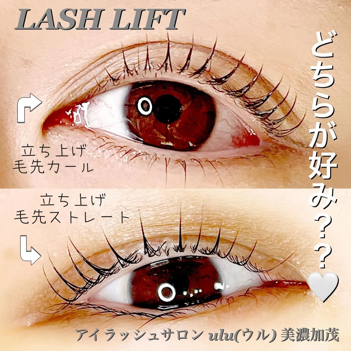 どちらが好み??🤍 どちらが好み??🤍どちらも立ち上げですが、毛先がカールとストレート。下の写真はまぶたに当たらないよう根本に丸みを付けたデザインになります。まつ毛パーマはいろんなデザインがあります☺️⚪︎日頃のメ…